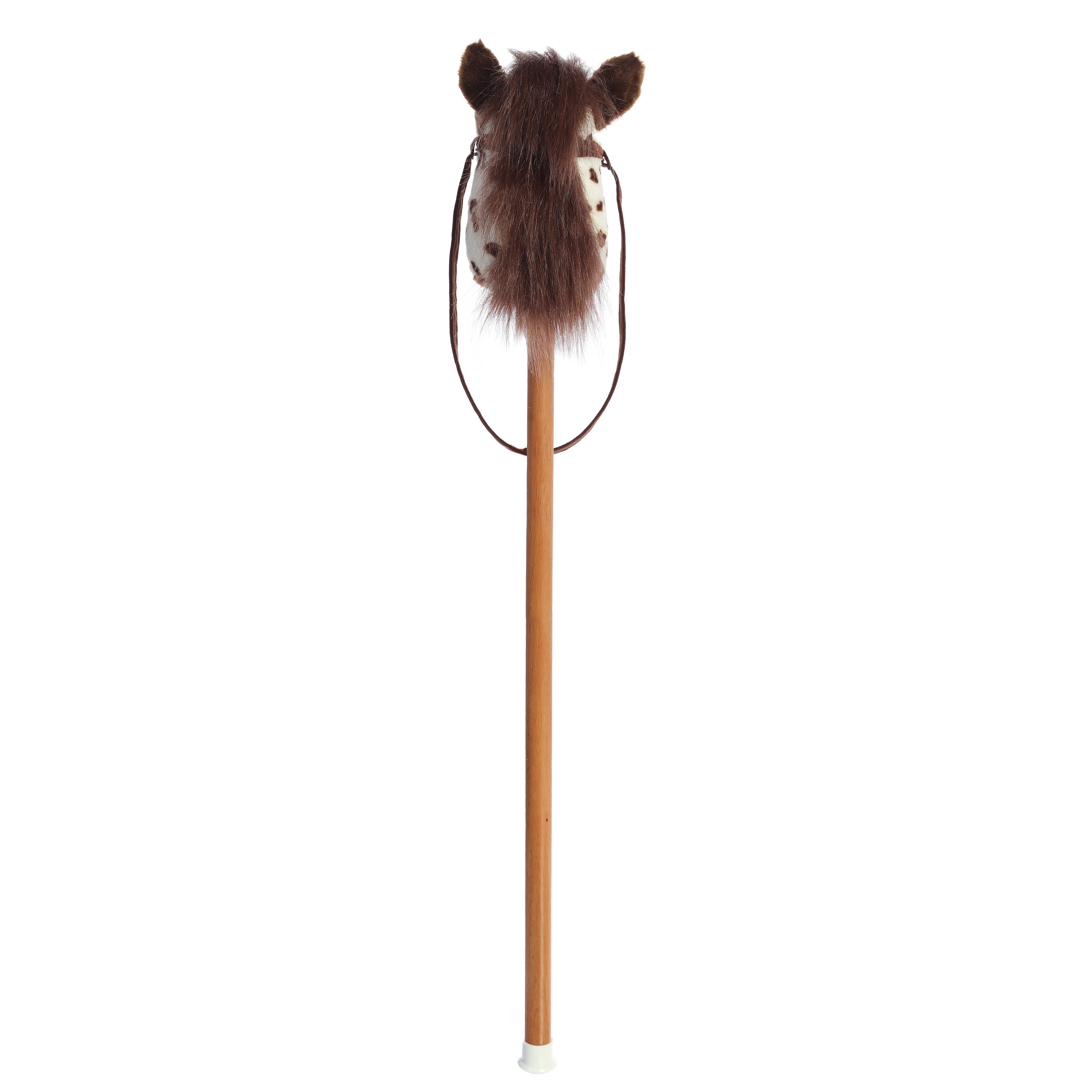 ¡Aurora tiene una variedad de juguetes de peluche interactivos que elevan el tiempo de juego y la fantasía al siguiente nivel! ¡Monta junto a tu próximo compañero favorito, este caballo pinto marrón escocés Giddy Up Stick! Sujeto a un palo de madera, este caballo pinto es blanco con manchas marrones por todas partes. Para aumentar el realismo y la diversión de este juguete, este pony de peluche puede emitir ruidos de "galope" y "relincho".