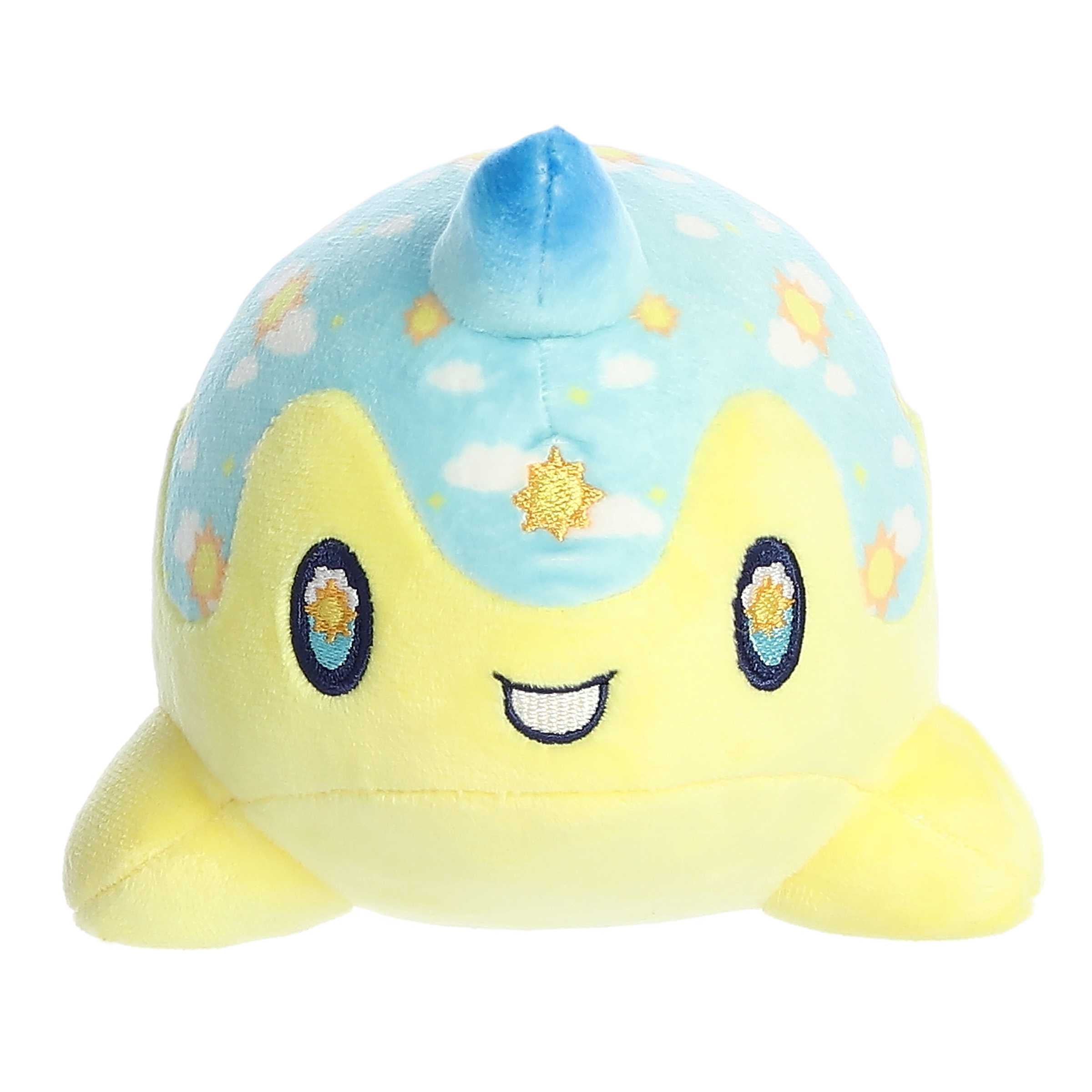 ¡Tasty Peach es una colección llena de kawaii que presenta postres de inspiración japonesa combinados con personajes adorables! ¡Este Sunny Day Nomwhal se presenta como un peluche brillante y acogedor que espera llenar tu día de sol! Esta versión del narval de peluche presenta un cuerpo de color amarillo brillante con un patrón de cielo azul brillante con soles y nubes en la parte superior de su cabeza.