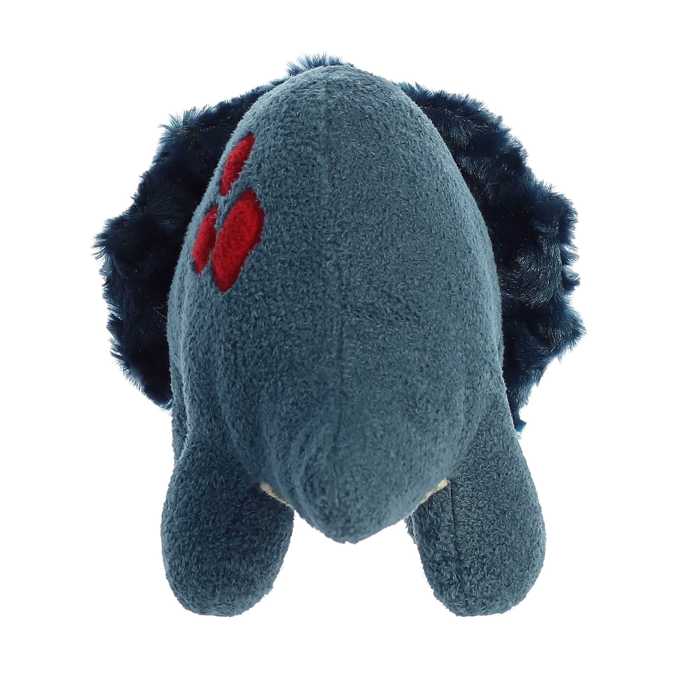 Welcome to Dino Land, an enchanting place full of colorful and friendly dinosaurs! Steggy is a navy blue stegosaurus that stands on all fours with a striped belly and three white horns.