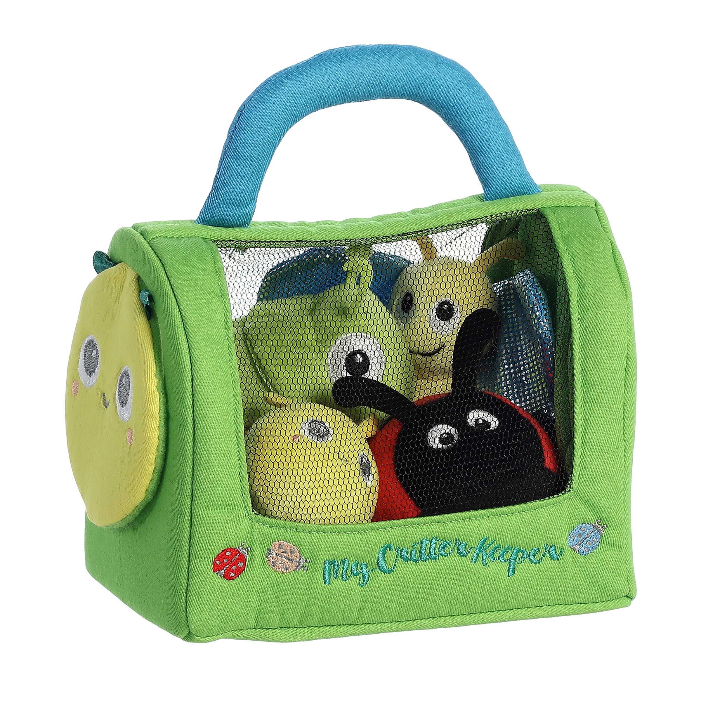 Baby Talk is a line of interactive plush toys made especially with your babies needs in mind Easy to take on the go and store! Each animal makes a different sound, rattles, or squeaks This set features a bug basket stuffed with your favortie insecta! It includes a butterfly that crinkles, caterpillar rattle and ladybug rattles and a cricket that makes a "boing" sound Each set is roughly 8 inches long from top to bottom while the critters are about 2-4 inches each