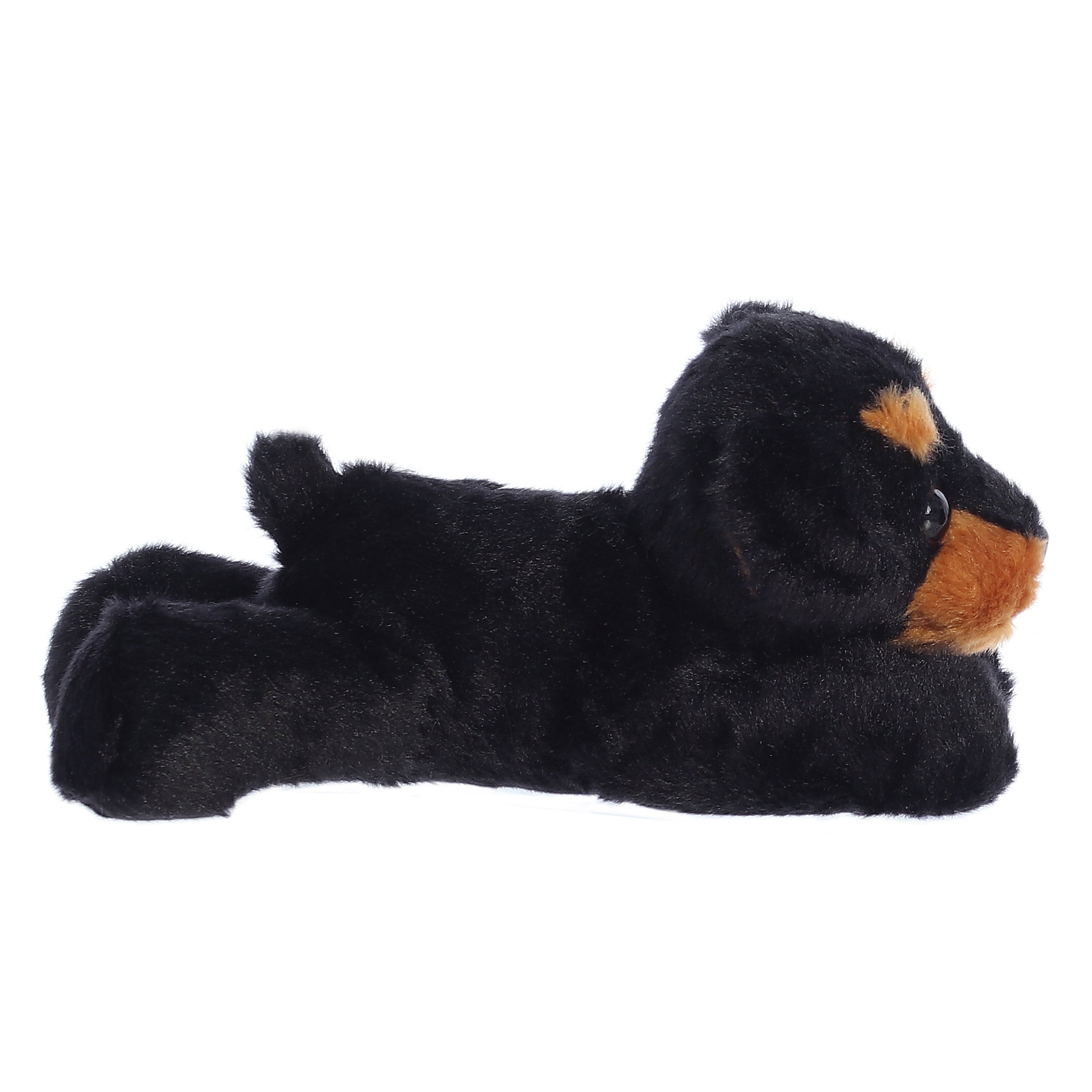 ¡Aurora's Flopsie presenta estilos en miniatura de tus compañeros animales favoritos en una posición de descanso para mayor ternura y facilidad al jugar, abrazar y más! Este Raina Rottweiler tiene un cuerpo de pelaje completamente negro con detalles en marrón en el hocico y las cejas. Llévate a casa este cachorro de peluche rottweiler para una excelente y realista adición a tu colección.