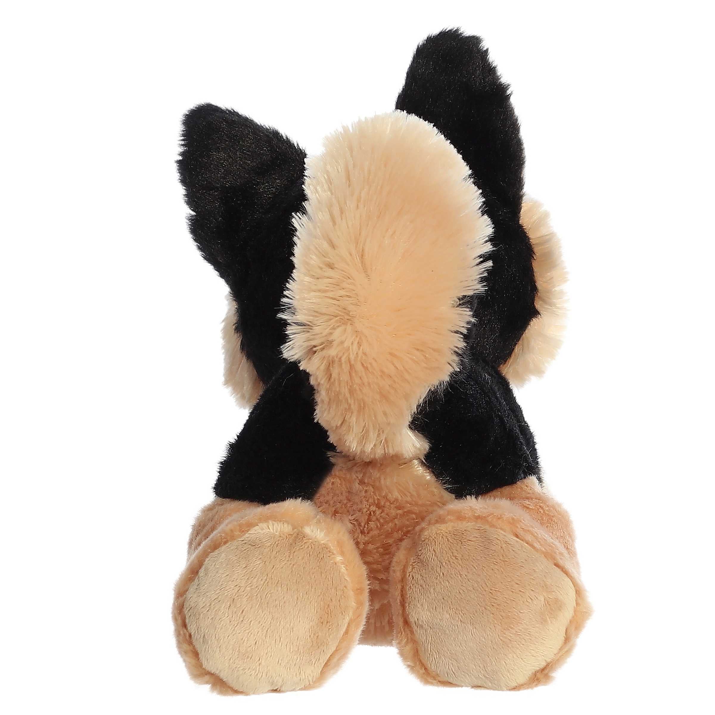 Con el tradicional color negro y fuego, Bismarck es un cachorro de perro pastor alemán de 30 cm de largo con orejas caídas, cola que se mueve y ojos ansiosos.