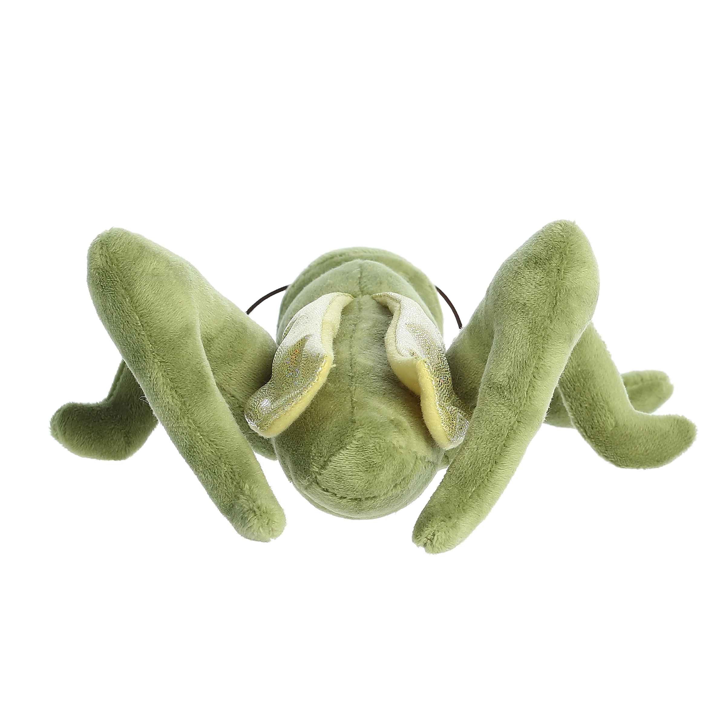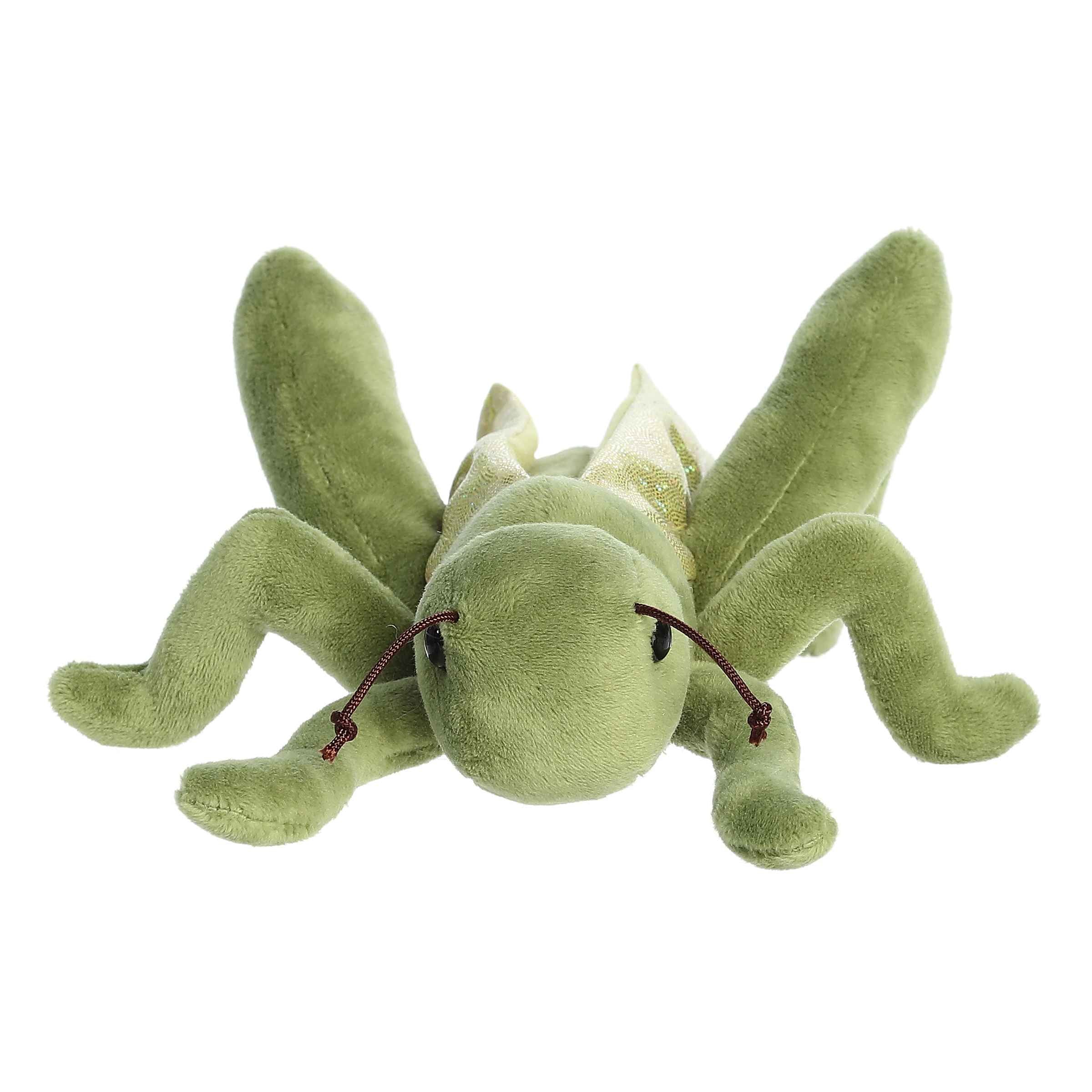 Embrace the unique charm of the Giant Grasshopper from the Mini Flopsie collection by Aurora. This plush is a brilliant interpretation of one of nature's most fascinating jumpers.