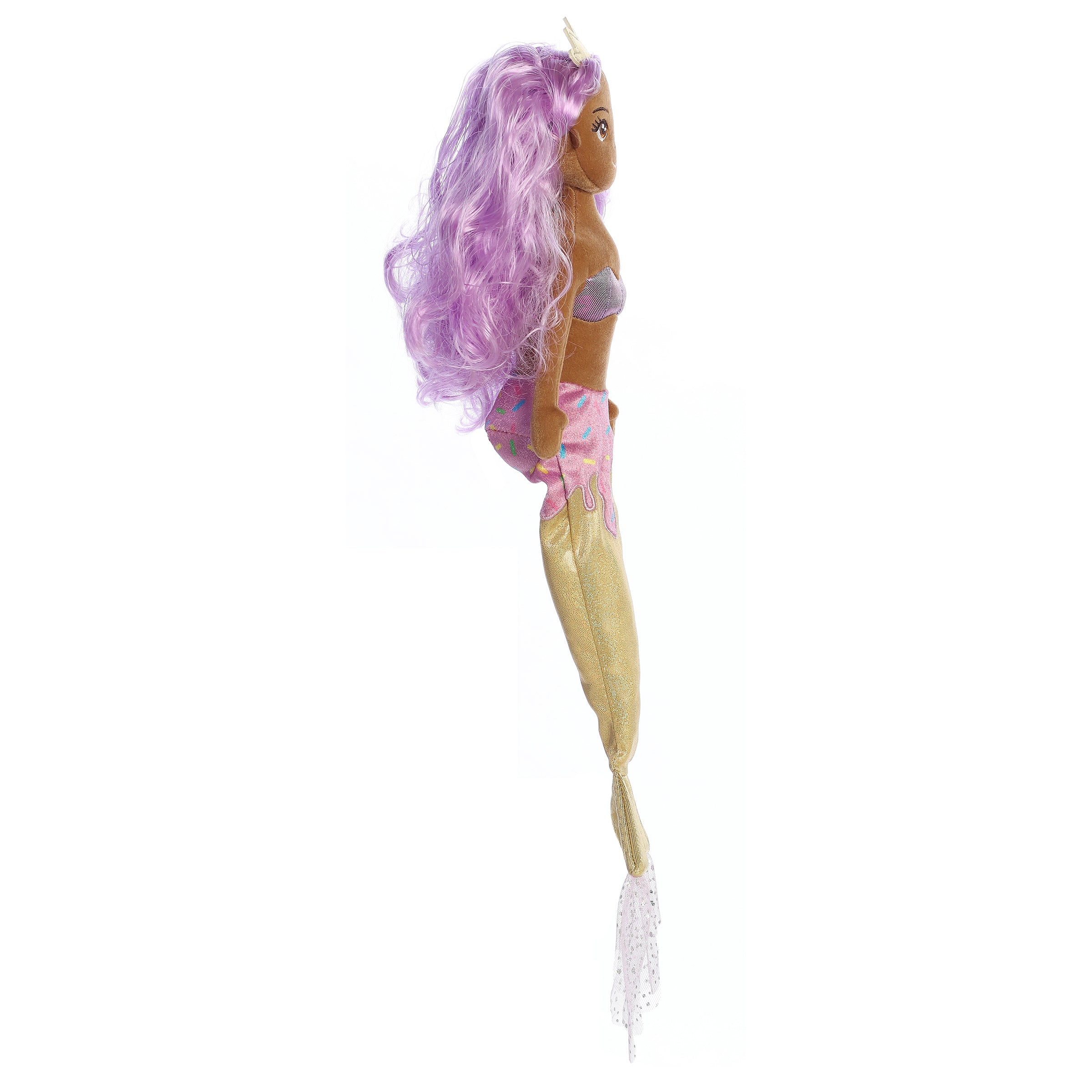 ¡Dulce como los arándanos es este arándano Sprinkle Sparkles! Sprinkle Sparkles Blueberry de Sea Sparkles presenta una adorable sirena con un mágico cabello morado y una brillante cola de sirena que se asemeja a un cono de helado. ¡Lleva una tiara brillante y su hermoso cabello de mylar morado es muy fácil de peinar!