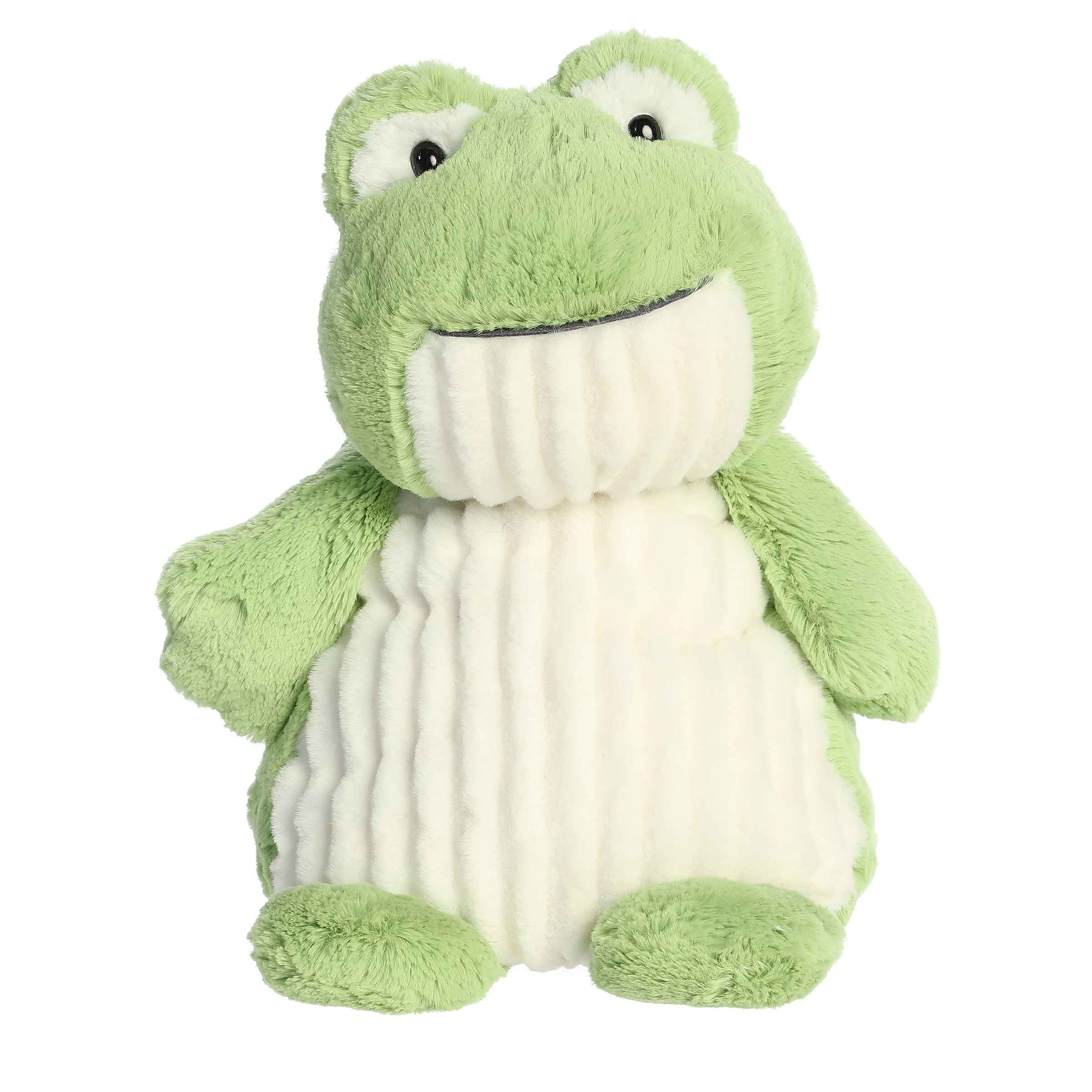 Crafted with attention to detail and the finest plush materials, it's durable, easy to clean, and ready for years of love and adventure. Ideal for frog enthusiasts or anyone looking for a cozy companion, the Fuzzy Frog is waiting to jump into your heart and your plush collection.