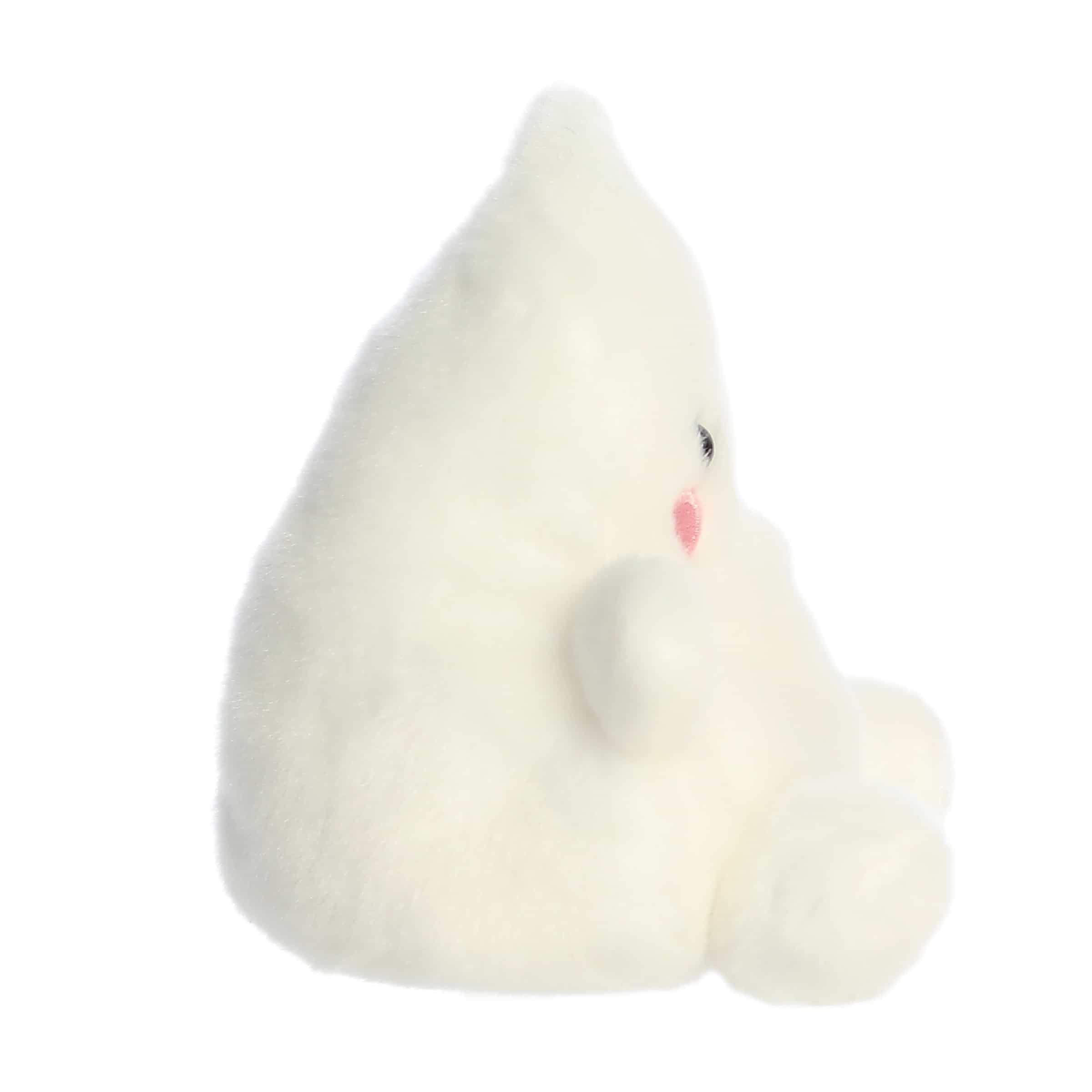 Adorable ghost plush with bright eyes, rosy cheeks, and a soft, whimsical shape. Ideal for festive displays.