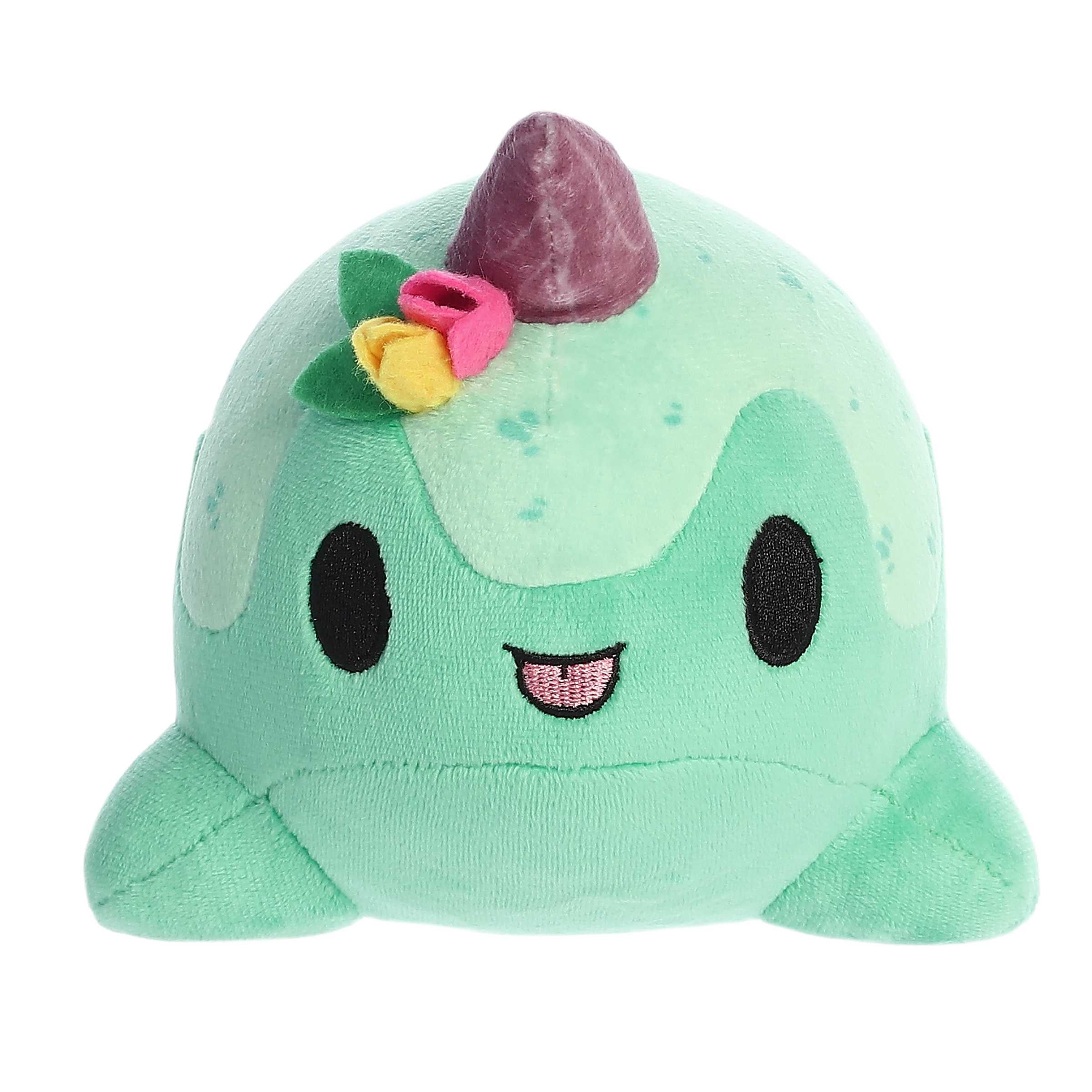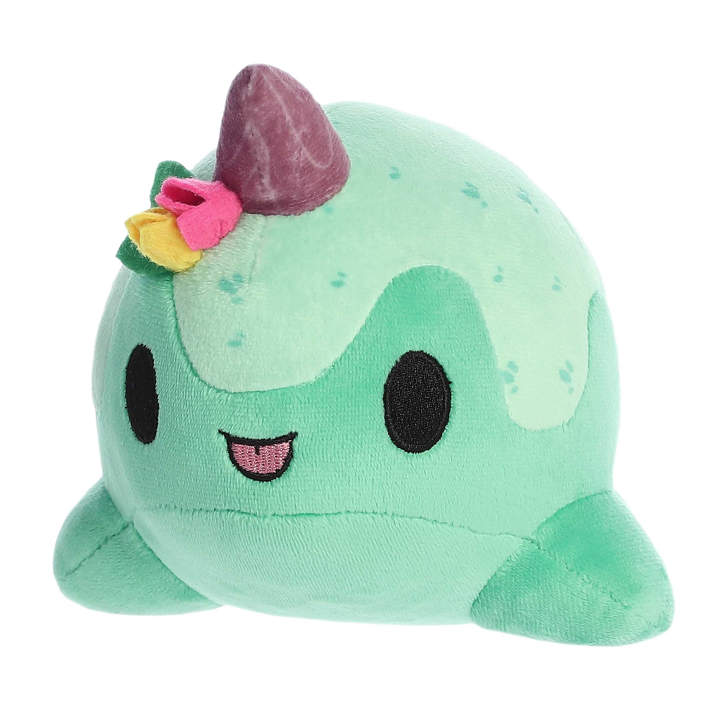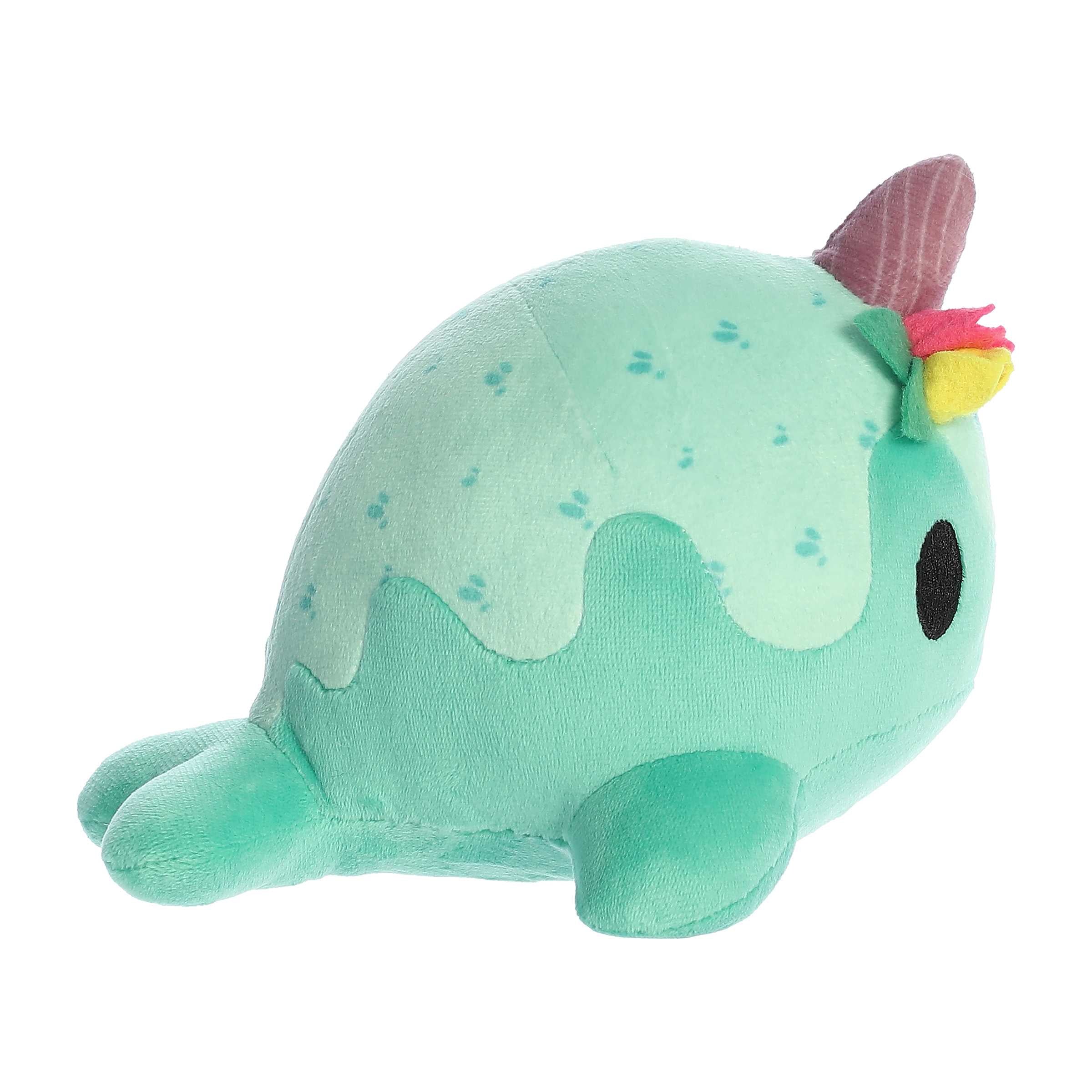 Dive into a sea of cuteness with our Tulip Nomwhal plushie, a delightful addition to the Tasty Peach family. This charming sea creature plush, in a fresh mint hue with subtle dot patterns, is inspired by the enchanting narwhal and spring's first tulips.