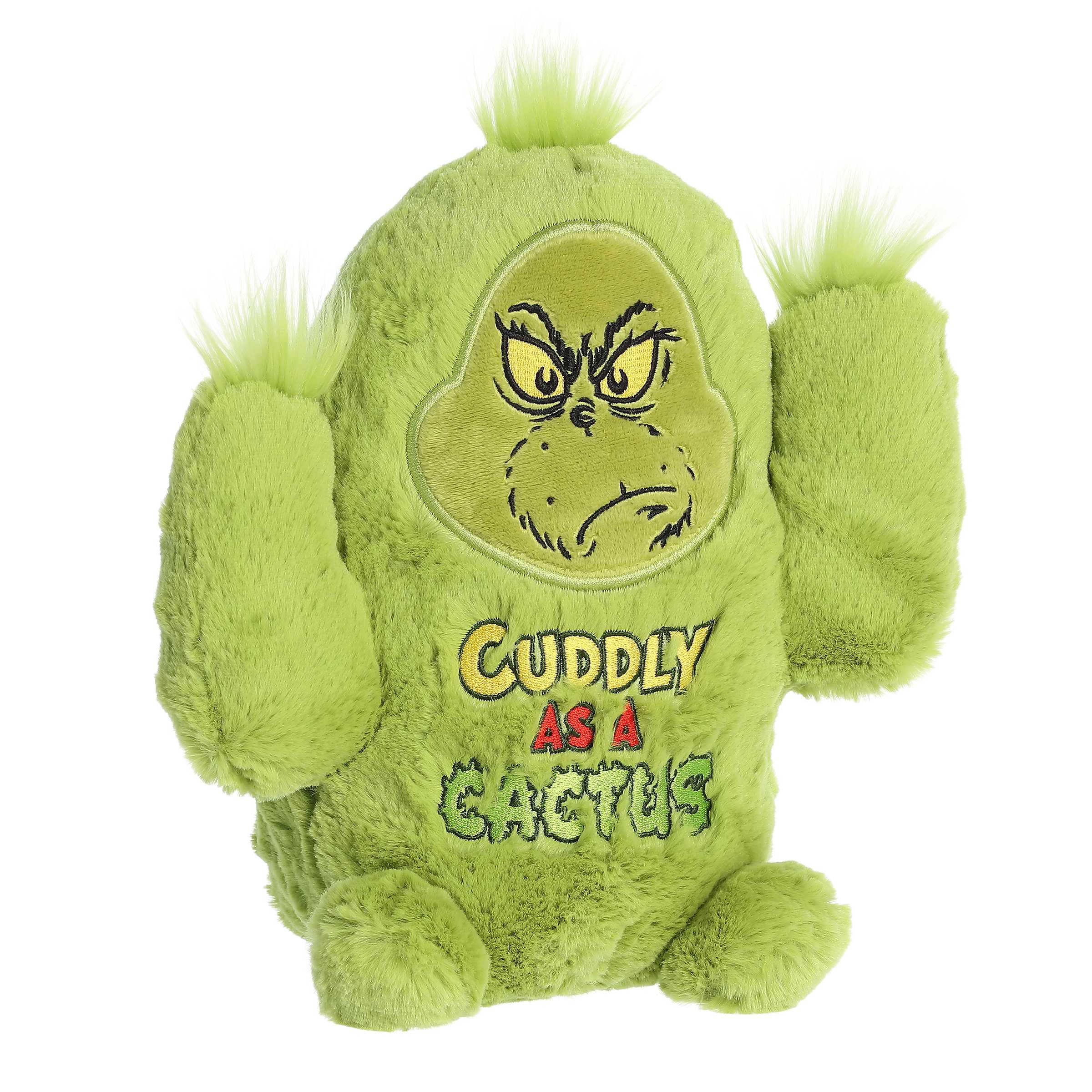 Embrace the playful spirit of Dr. Seuss with the 'Prickly Grinch Plush', an Officially Licensed rendition of Whoville's most famous resident. Soft to the touch and irresistibly huggable, this plush features the Grinch's iconic scowl, complete with his 'Cuddly as a Cactus' motto. A heartwarming addition to any holiday decor or toy collection, it's the perfect gift for fans of the classic story or anyone who loves a touch of mischief in their cuddles.