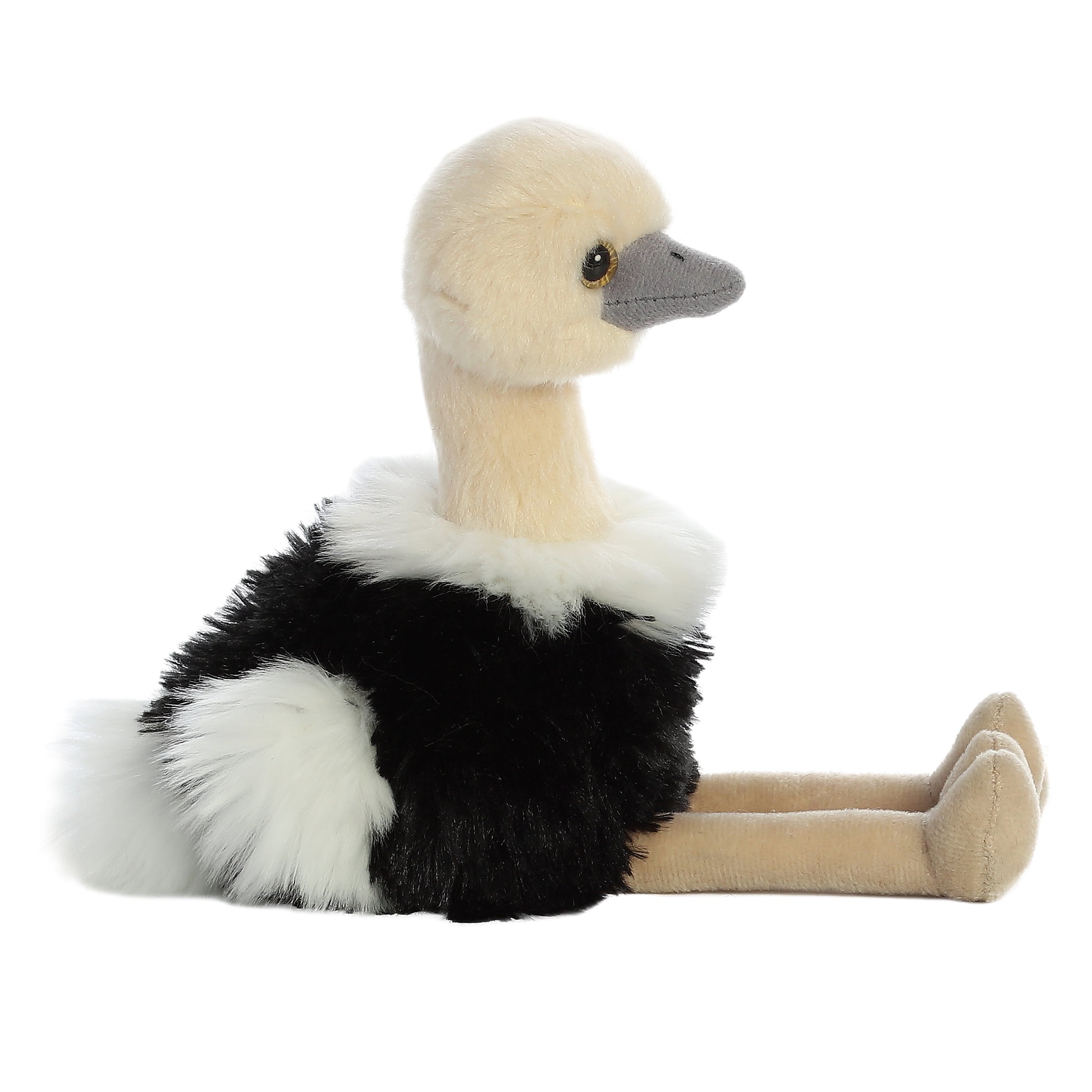 Ozzi the Ostrich from Aurora’s Mini Flopsie collection is full of quirky charm and cozy comfort. With ultra-soft beige and black plush feathers, long floppy legs, and an inquisitive expression, this lovable ostrich brings a unique twist to your plush lineup.