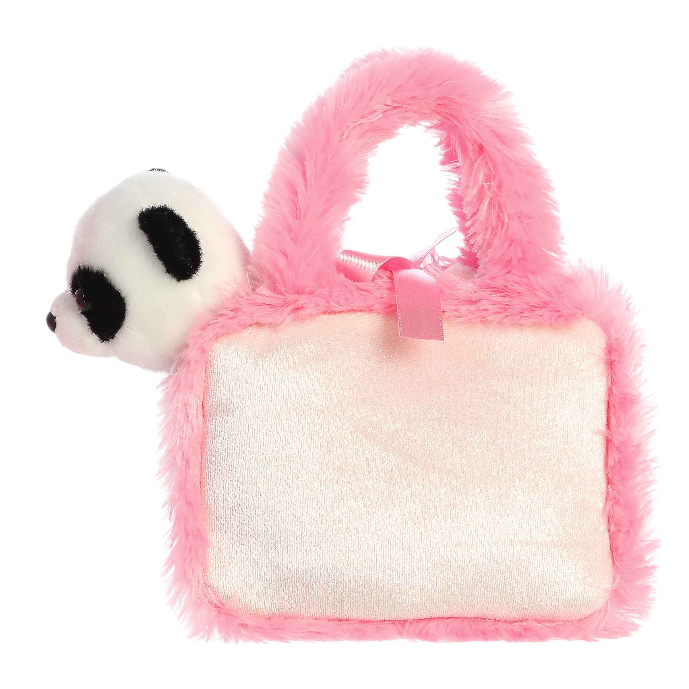 Embrace the charm of the bear with the Zoo Collection - Panda from Aurora's Fancy Pals. This delightful panda plush, snugly fitted inside a plush pink carrier, showcases the classic black and white colors of a panda, made irresistibly soft and huggable.
