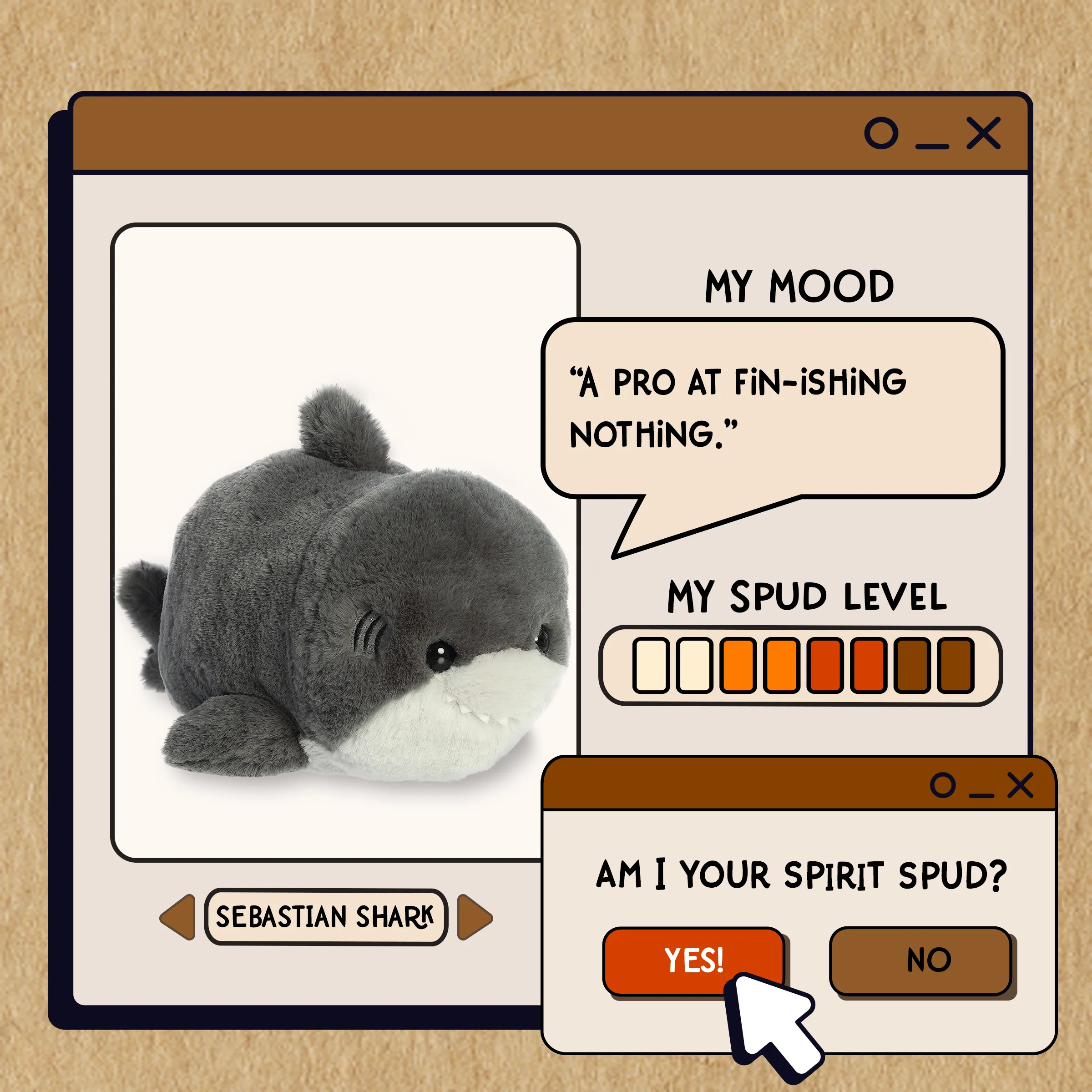Dive into the ocean of cuteness with Sebastian Shark, part of the innovative Spudsters collection by Aurora plush. This plush toy offers a charming twist on the fearsome creature of the deep, blending the silhouette of a friendly shark with the adorable shape of a potato.