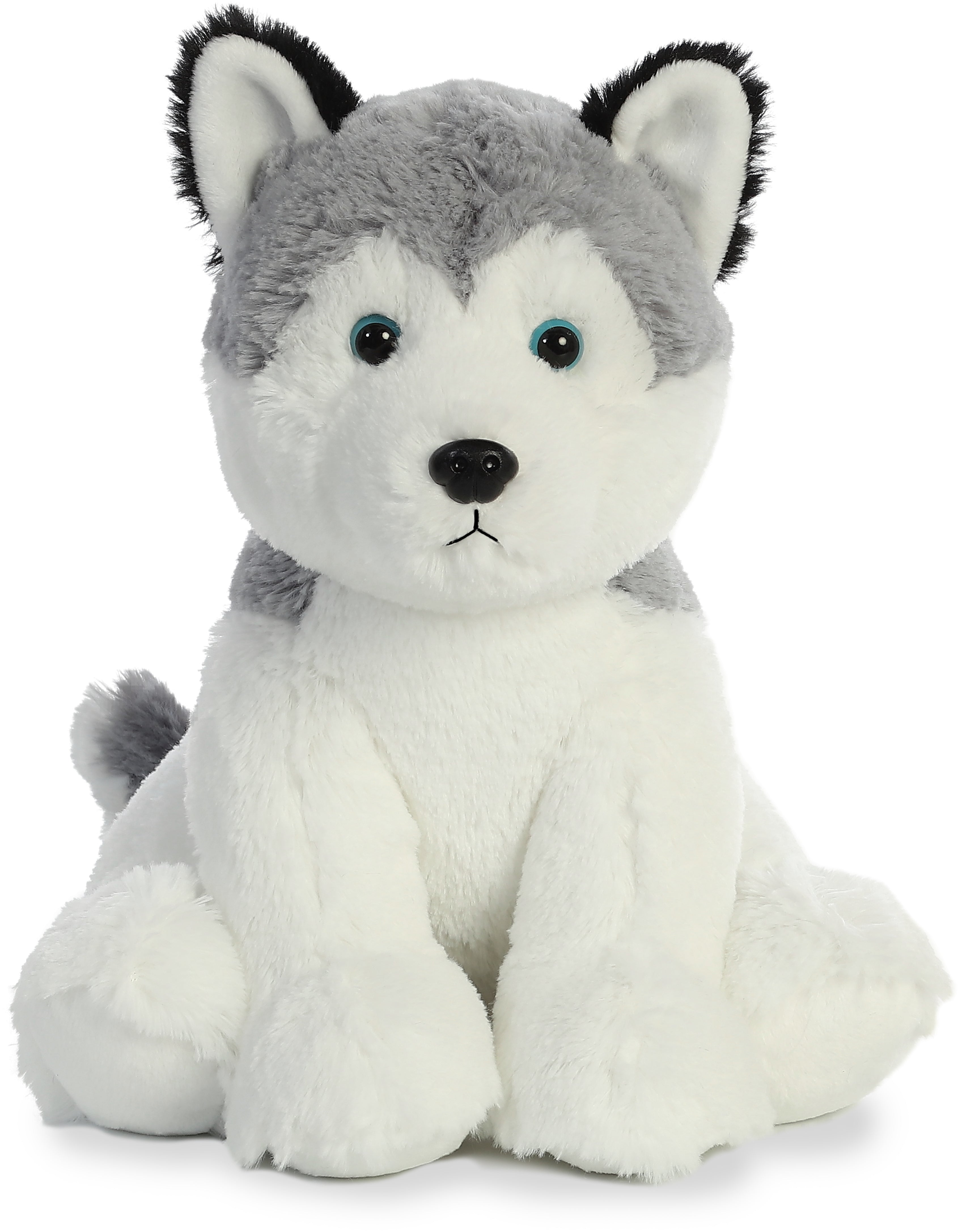 It features a striking gray and white coat, bright blue eyes, and soft, pointed ears that are true to the husky's spirited nature. Designed for husky lovers and plush collectors, this stuffed animal is the perfect snowy companion for any adventure.