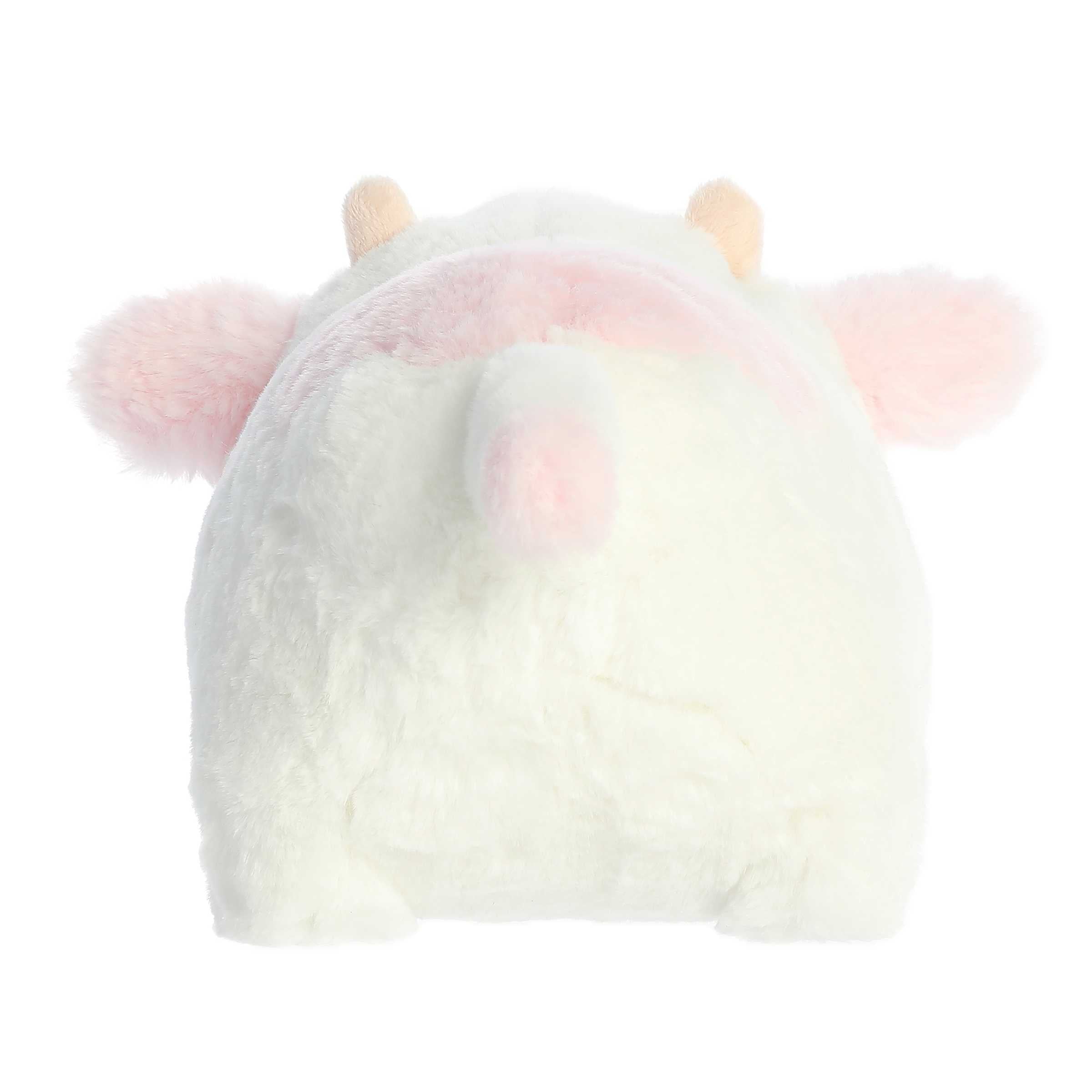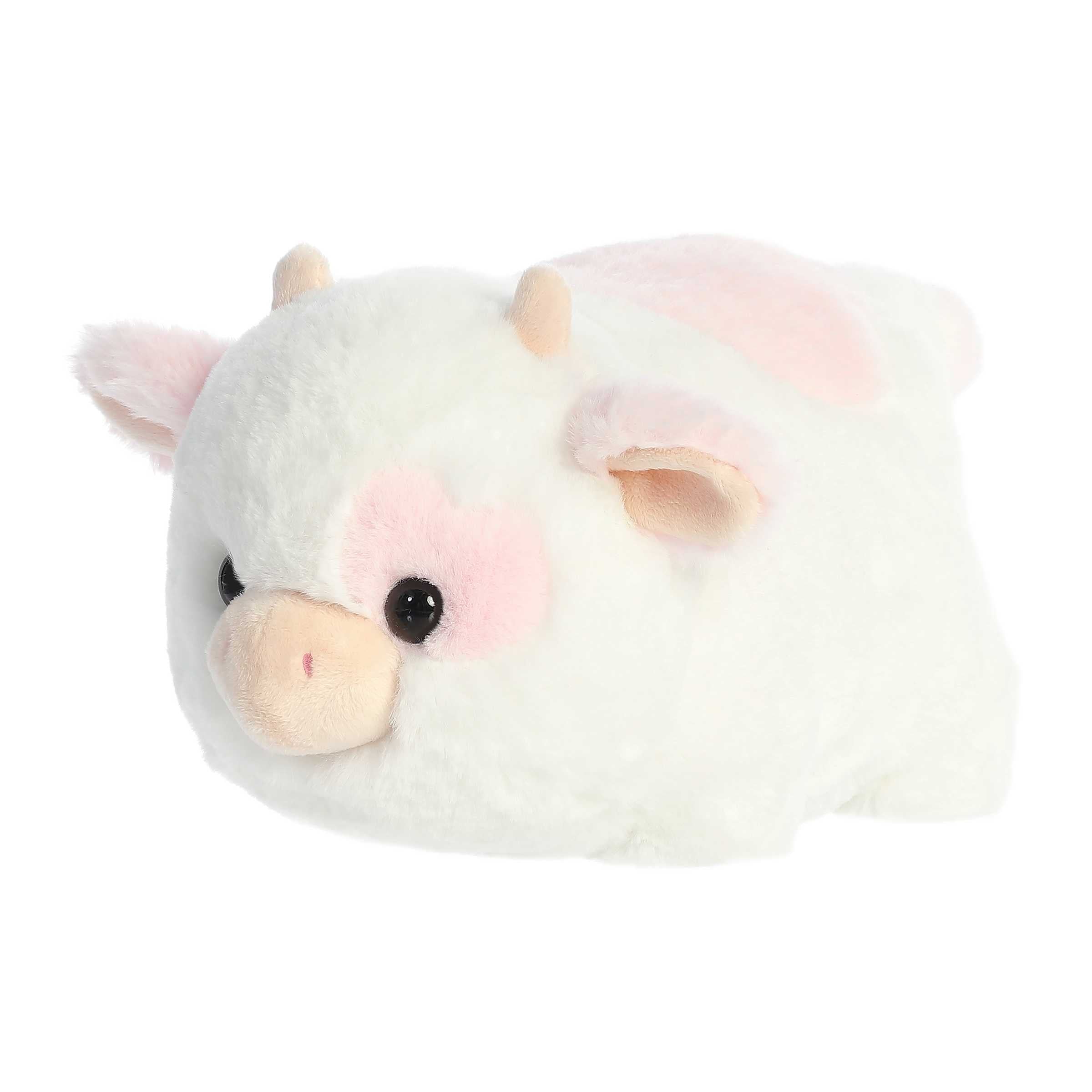 Moonique stands out with her fluffy white body, adorned with delightful strawberry pink spots that instantly evoke the nostalgic and sweet vibes of strawberry milk. Her design is accentuated by a peach-cream nose and horns, adding just the right amount of warmth and detail to this adorable plush cow.