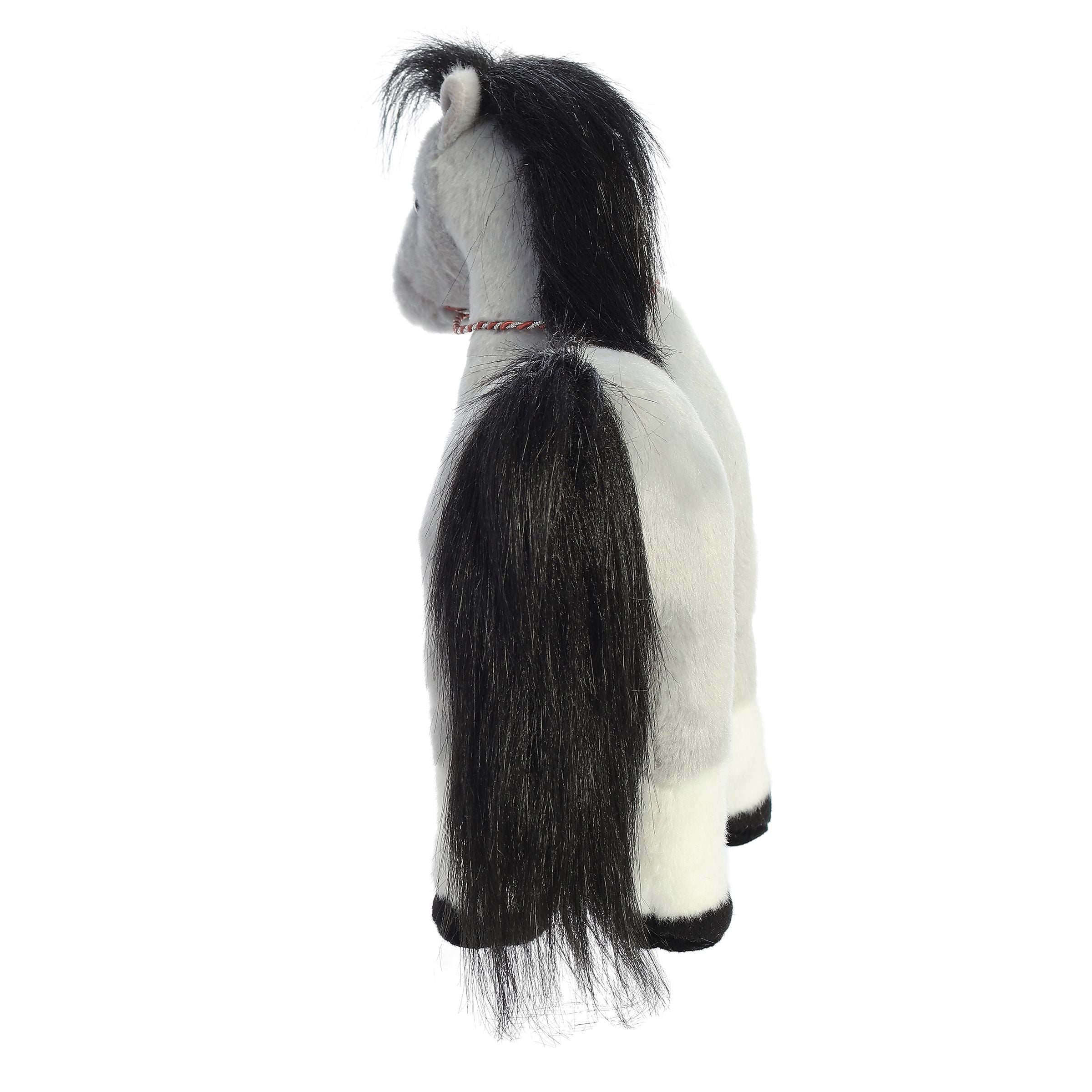 The Welsh Cob from the Breyer - Showstoppers plush collection by Aurora is a stunning representation of this majestic horse breed. Crafted with precision and care, this plush features a soft grey coat, stark black mane, tail, and hooves, and wears a charming two-colored braided bridle. Its attentive, lively eyes and upright posture capture the spirited and strong nature of the Welsh Cob. Made from premium materials, this plush horse is both durable and beautiful, perfect for collectors and horse enthusiasts looking to add a touch of realism and elegance to their collection.