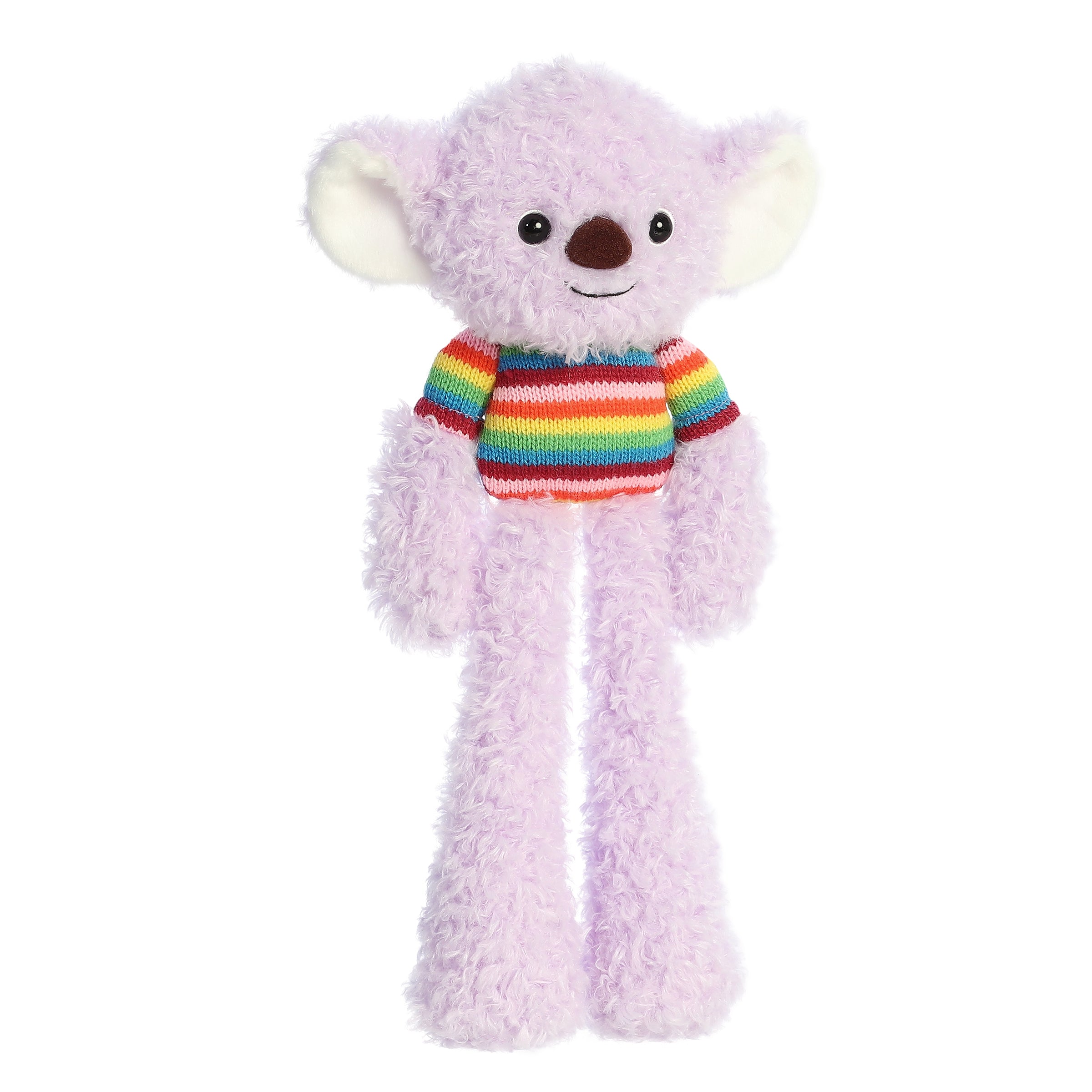 Koala from Dingbits by Aurora is a charming plush companion designed to delight with its soft lavender hue and playful expression. This whimsical plushie features a distinctive elongated body and a colorful, striped sweater, making it an excellent choice for both hugs and decorative display. The plush, soft fabric ensures that it is as cuddly as it is eye-catching. Perfect for plush lovers of all ages, Koala adds a dash of vibrant color and joyful warmth to any collection.
