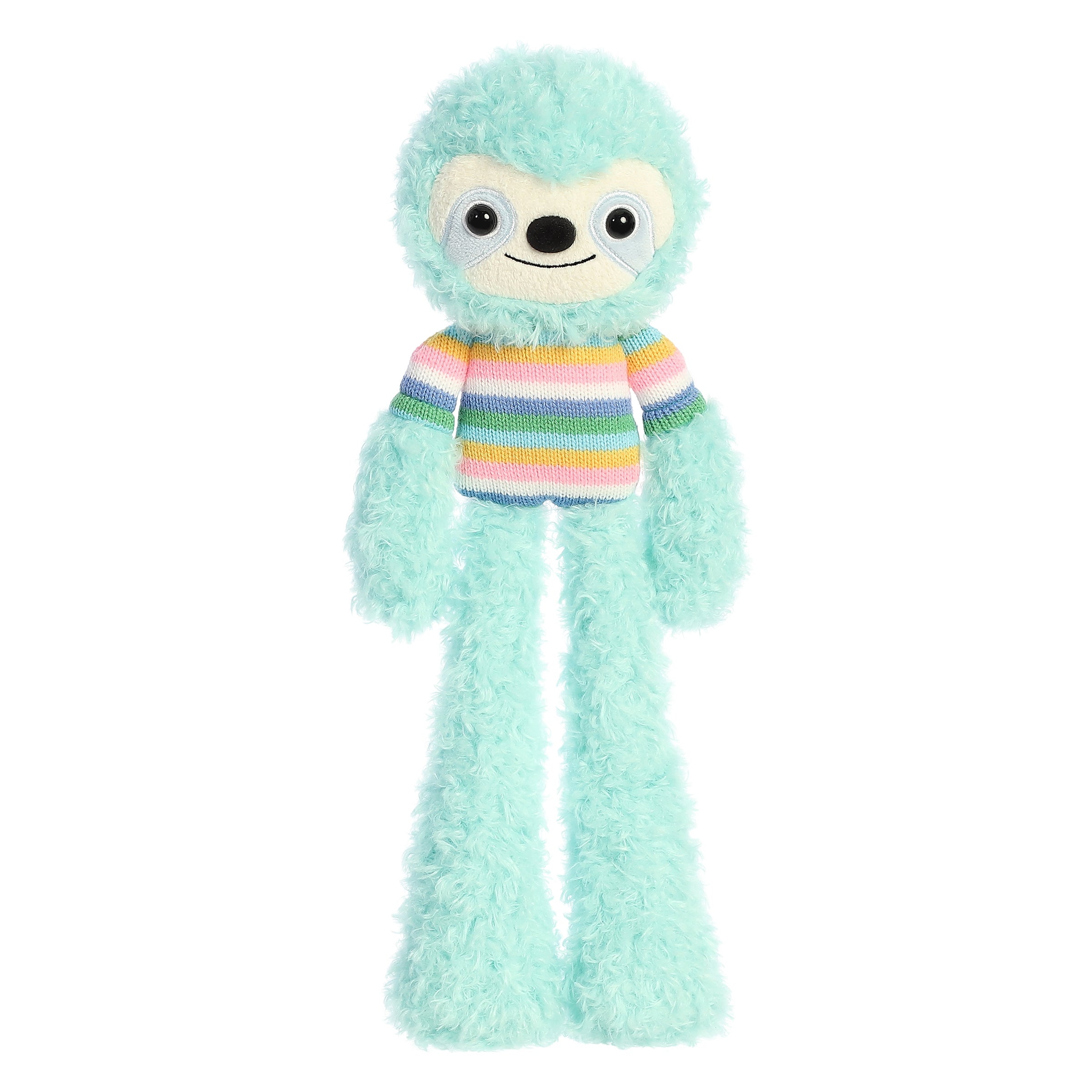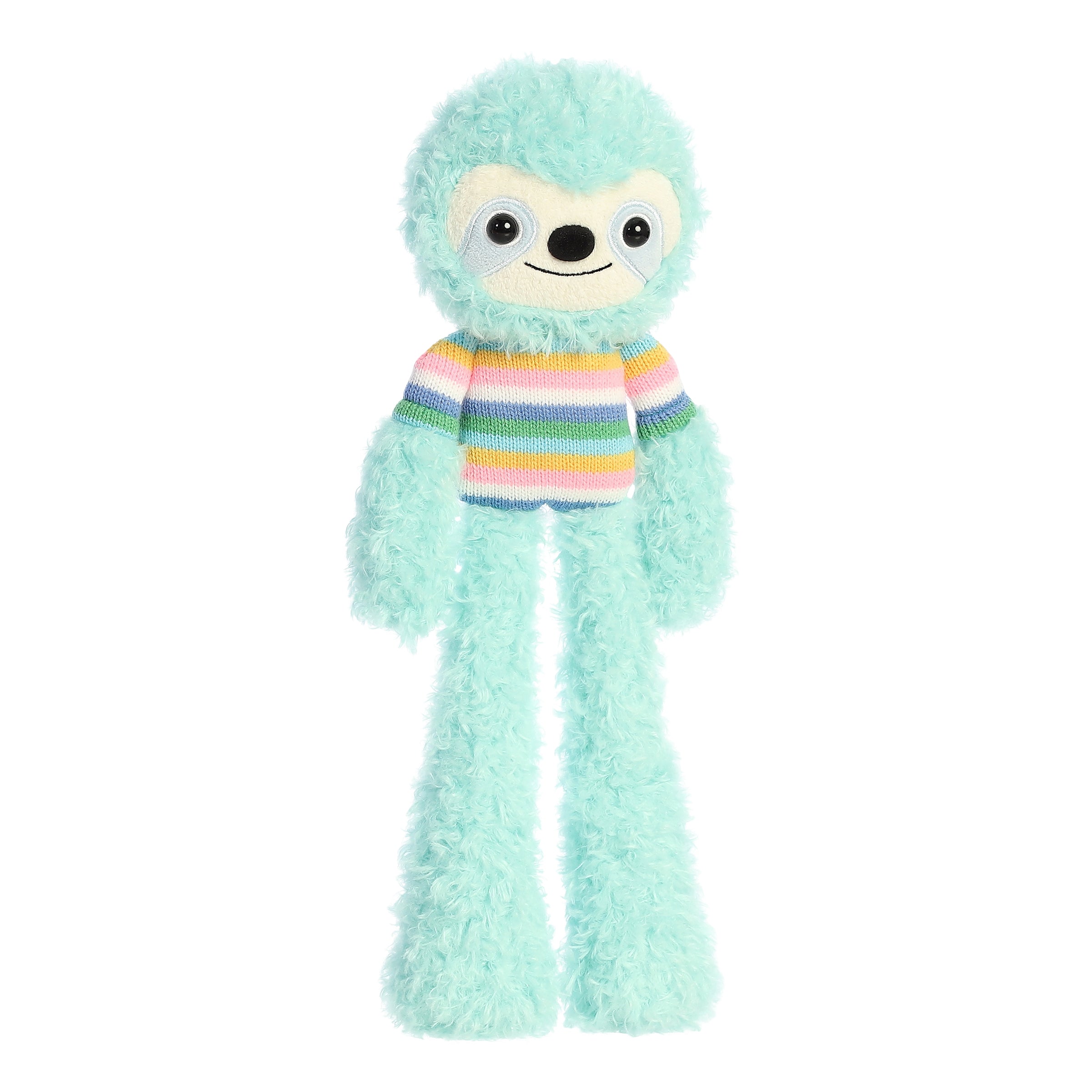 This aqua blue plush Sloth from Dingbits by Aurora captures the essence of fun and coziness. With its distinctive elongated body and adorned with a multi-colored sweater, it stands out as both a cuddly companion and a vibrant decorative piece. The plush fabric ensures ultimate softness, making it a joy to hold and perfect for all ages. Ideal for adding a touch of whimsy and color to any room, Sloth is a delightful addition to any plush collection, ready to provide warm hugs and bright smiles.