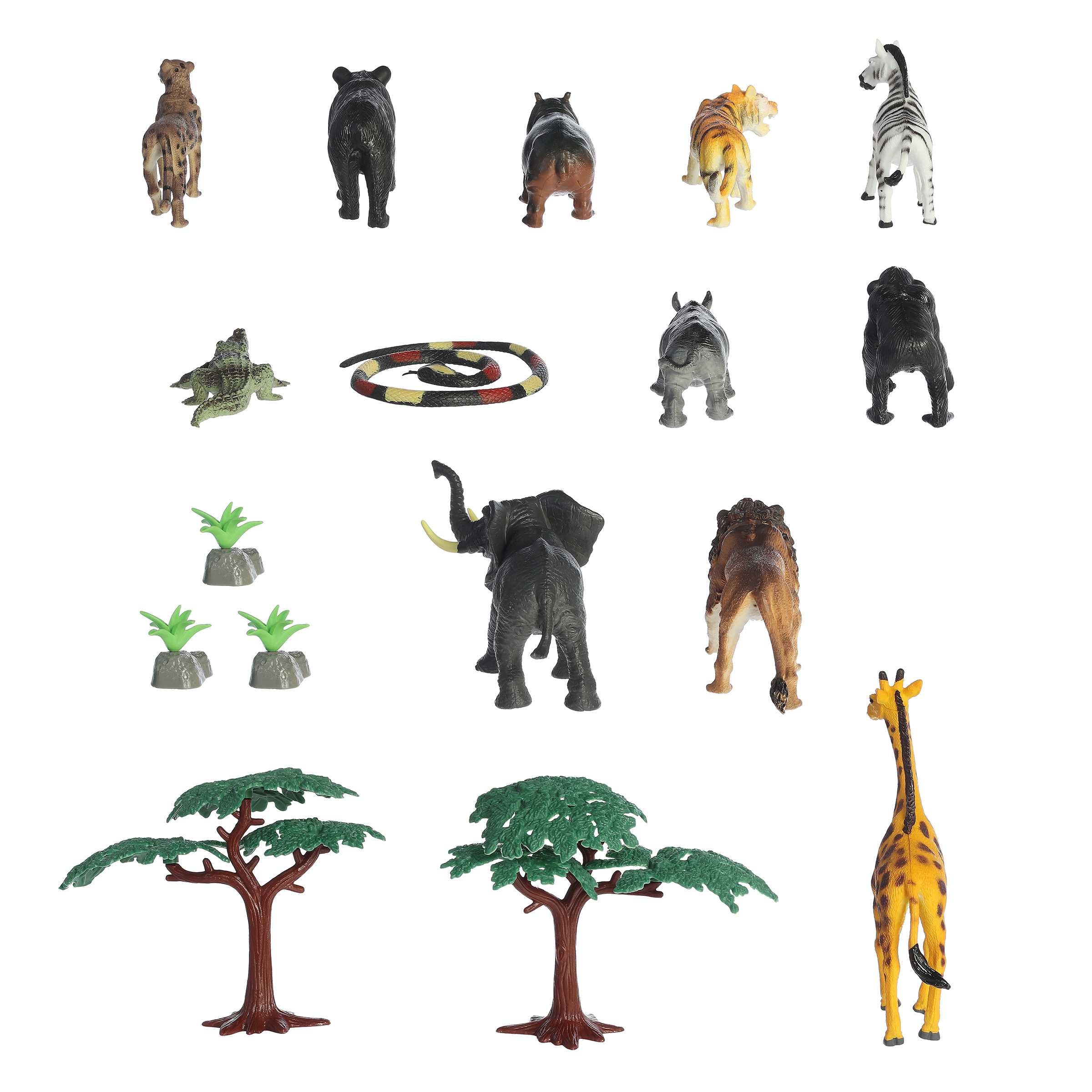 Embark on a thrilling jungle safari from the comfort of your home with our "Animals of the Wild Play Set". Designed to spark imagination and inspire an interest in wildlife, this 20-piece set includes meticulously crafted figures of the animal kingdom's most iconic members, from the towering giraffe to the stealthy tiger.