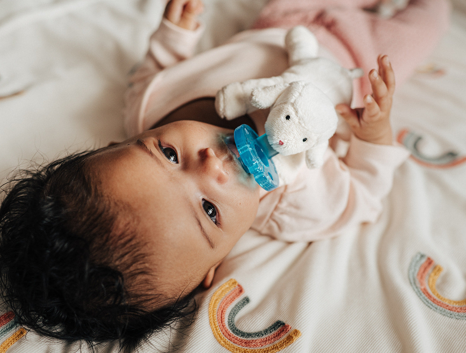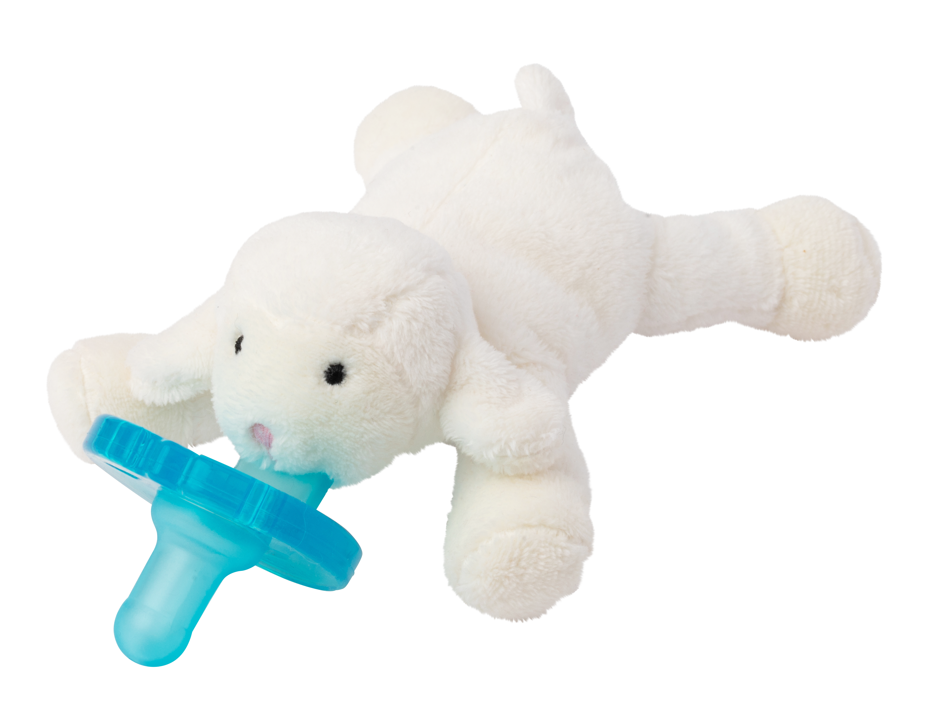 With a pacifier attached to the plush Little Lamb, whose dainty legs are ideal for tiny hands to grasp, the unique style of the WubbaNub pacifier allows it to remain close and easily positioned by the baby. Easy to grasp, nearly impossible to lose and may assist baby to self soothe.