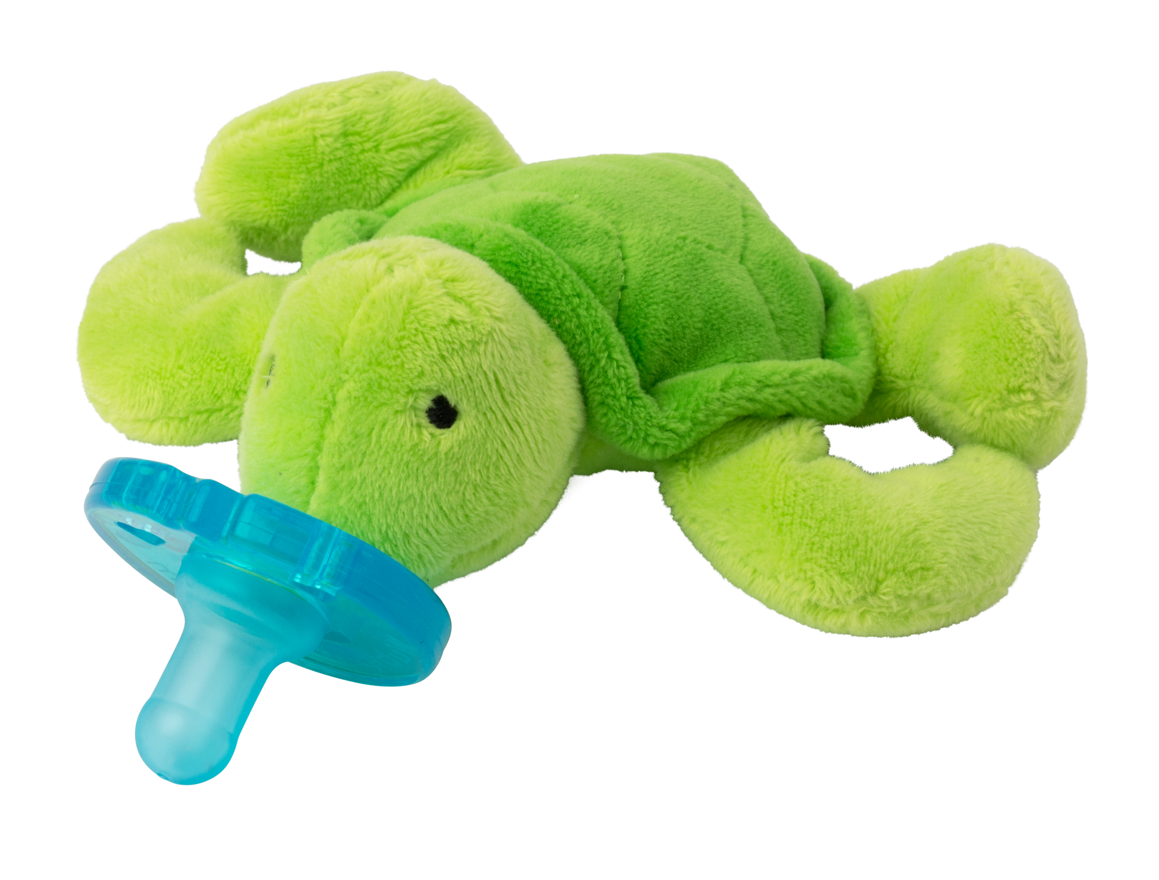 Attached to the plush baby Turtle, whose little legs are perfect for teeny-tiny hands to grasp, the unique style of the WubbaNub pacifier allows it to remain close and easily positioned by the baby. Easy to grasp, nearly impossible to lose and may assist baby to self soothe.